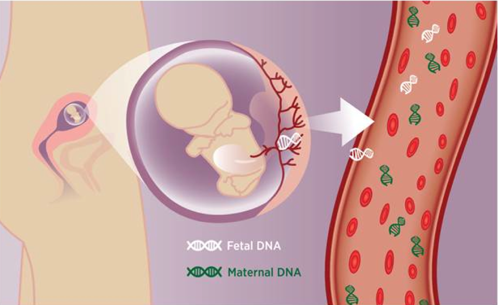 La diagnosi prenatale non invasiva (NIPT) si basa sul principio che a partire dal primo trimestre di gravidanza, è presente nel circolo ematico materno DNA libero di origine fetale (cell free fetal DNA, cffDNA), che può essere recuperato in maniera non-invasiva (semplice prelievo di sangue) ed utilizzato per lo studio di alcune patologie fetali. Il cffDNA può essere isolato precocemente a partire dalla X settimana, quando raggiunge quantità sufficienti per il potenziale impiego clinico. La percentuale del cffDNA viene definita “frazione fetale” (FF). Il cffDNA non è più reperibile nel circolo materno poche ore dopo il parto e probabilmente viene eliminato attraverso l’escrezione renale. Il NIPT non è un test diagnostico, ma di screening.